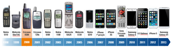 Figure 2 – Illustration showing timeline of mobile models and highlighting examination between 2014 and 2015 in Brazil (Source: INPI 2015).