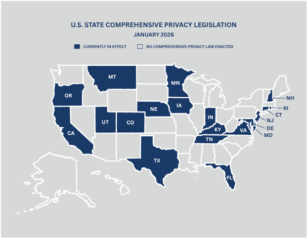 Figure 1. U.S. State Comprehensive Privacy Legislation (Jan. 2026).[2]