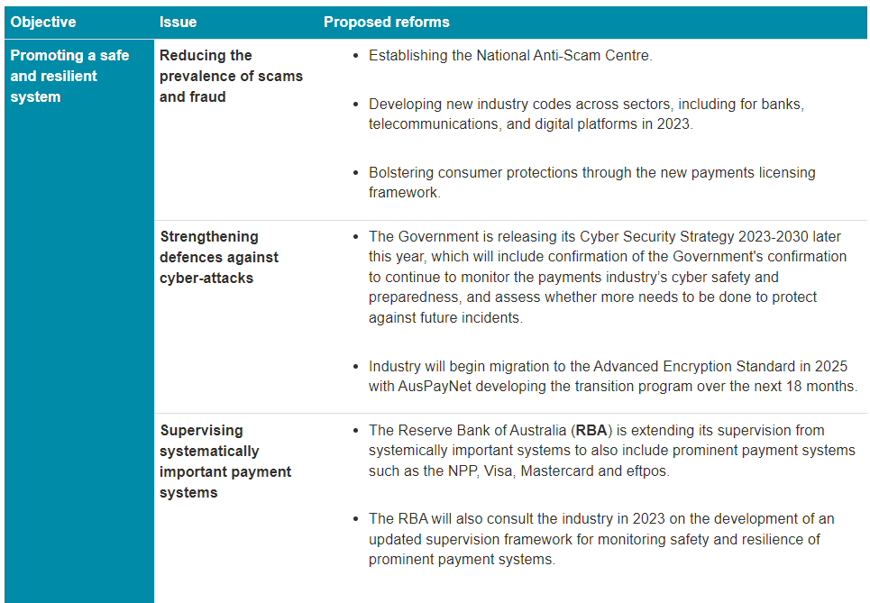 The Australian Government has released its Strategic Plan for Australia’s Payments System (Strategic Plan). The Strategic Plan follows on from the Treasury’s Consultation Paper released in December 2022 and outlines a raft of proposed legislative and policy changes to the current payments system regulatory framework. The foreshadowed changes are significant and far-reaching and are aimed at building a modern and resilient payments system. Treasury has heralded the Strategic Plan as the biggest overhaul of Australia’s payments system in 35 years, positioning Australia as a leader in the global payments landscape.