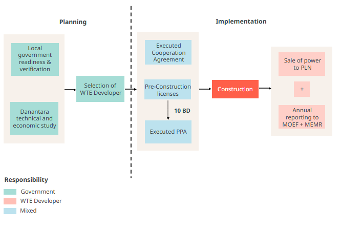 Under PR 109/2025, the implementation of WTE projects will occur in two stages: (1) planning and (2) implementation, which shall be led by Danantara.1