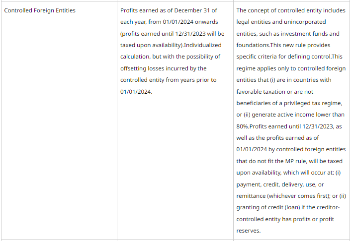 - The individual who has opted for the reassessment of foreign controlled entities may carry out a new reassessment for the period up to 12/31/2023, with the gain also taxed at a rate of 10%, and the tax must be paid by 05/31/2024.