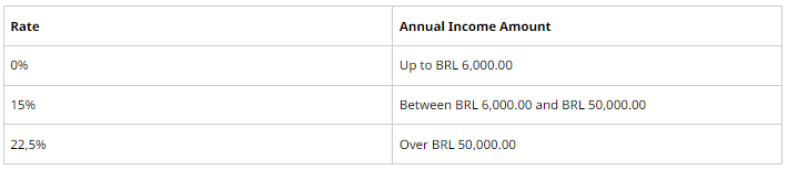 These foreign incomes will be subject to taxation under the Individual Income Tax (IRPF) and must be reported in the Annual Adjustment Return (DAA). Such incomes are subject to the progressive rates below, without any deductions: