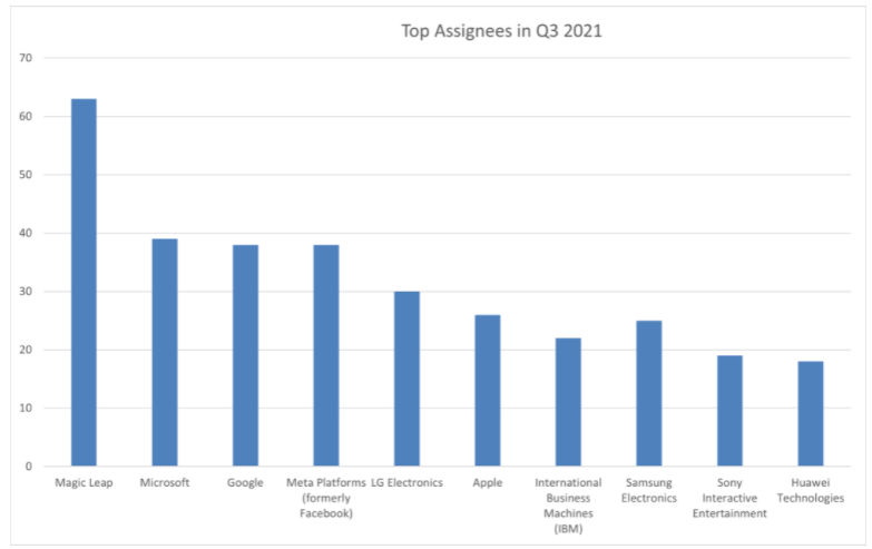 FIG.2 Top ten assignees by volume of AR/VR patents issued in Q3 of 2021