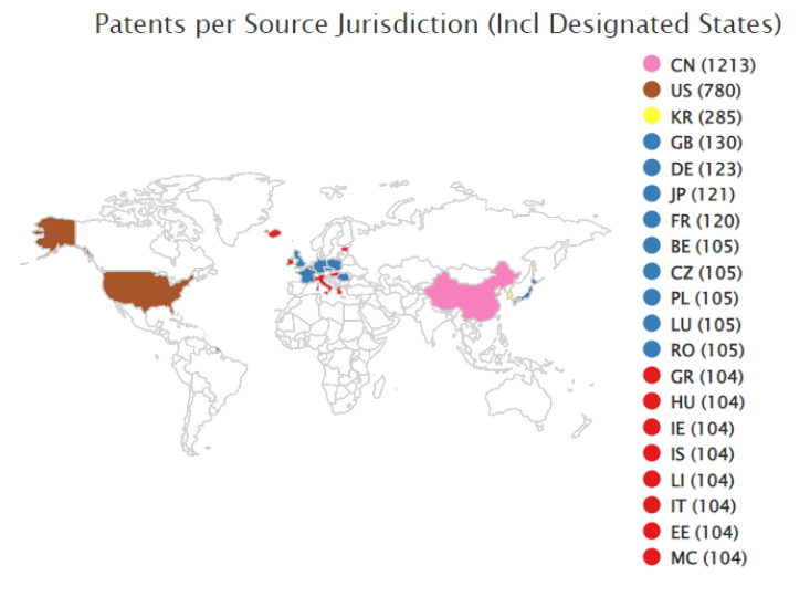 The third quarter of 2021 followed the trend of increased Augmented Reality/Virtual Reality patents that began in the first quarter of 2021. In the third quarter of 2021, 2735 patents were issued worldwide related to AR/VR technologies, a slight increase from 2698 patents issued in the second quarter of 2021. China and the United States remain the highest volume offices, with the Chinese patent office (SIPO) issuing about 1213 patents and the USPTO issuing 780 patents approximately matching their second quarter volumes. SIPO continues to issue more patents in 2021 than USPTO compared to the previous year. Overall, most offices around the world issued more AR/VR patents, perhaps attributable to increased interest in the Metaverse. For example, in the third spot, Korea has issued patents 285 in the third quarter of 2021 (146 more than Q3 of 2020). Japan, another country in the top ten, issued 121 patents (43 more than Q3 of 2020).
