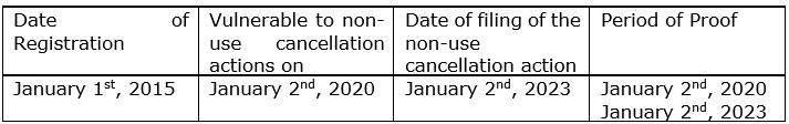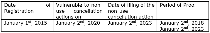 Up until now, the common understanding was that the owner of the challenged registration should present evidence comprising five years from the filing date of the non-use cancellation action, even if this period somehow comprised the first five years of the registration.
