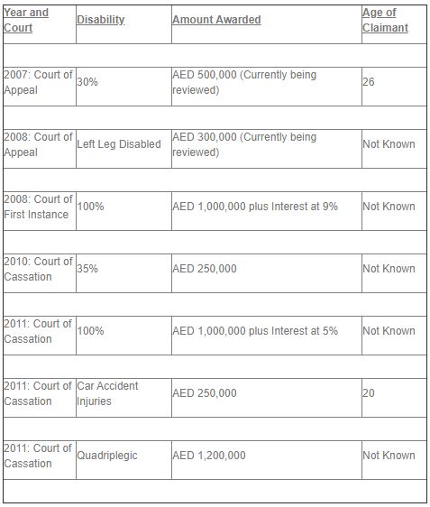 - A conclusion to our review of the way the Duabi Courts have treated Personal Injury claims and the awards that have been made in a number of cases.