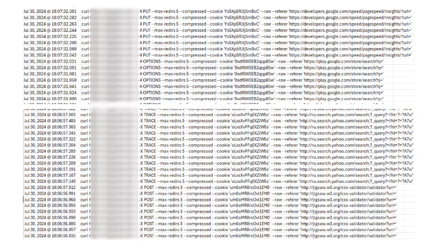 We also observed thousands of repeated requests from our device towards a specific domain, indicating a probable Denial of Service (DoS) attack. The attackers seemed to be probing services on a website with IP address source originating from Russia. These repeated requests were likely an attempt at a denial of service, utilising several different referrers as a source of ‘legitimacy’.