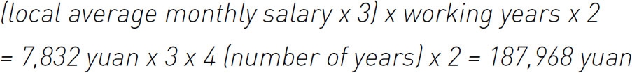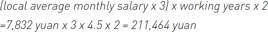 The employee’s salary was more than three times the local average salary and the compensation was 23,496 yuan (7,832 yuan x 3) per year of employment, doubled for each year owing to the circumstances.