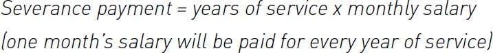 The formula for the calculation of severance payment is as follows: