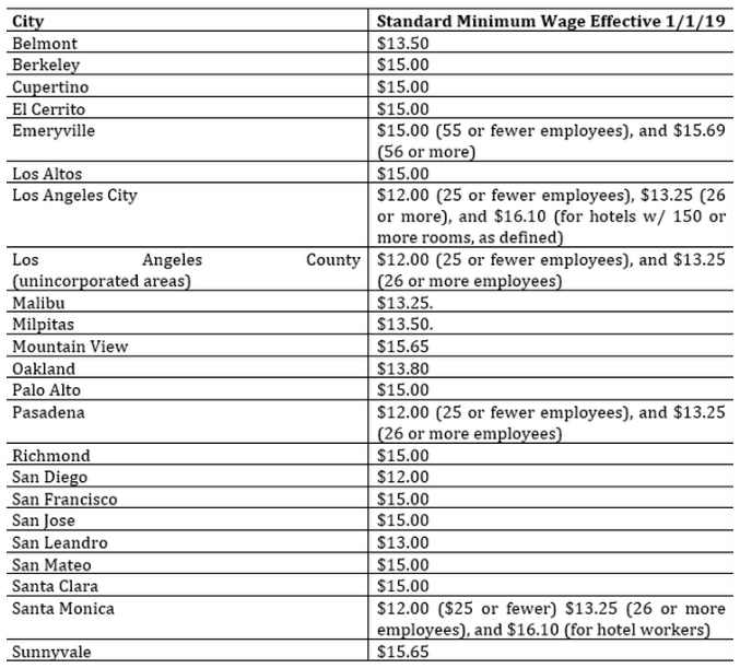 As of January 1, 2019, the state’s minimum wage is $11 for employers with 25 or fewer employees and $12 per hour for employers with 26 or more employees. The following municipalities have enacted minimum wage ordinances that exceed the state minimum: