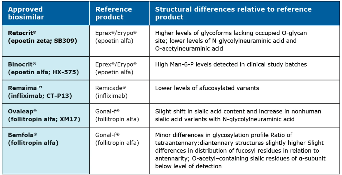 Structural differences between the active substances and their relevant reference products (Grampp and Ramanan, Amgen)